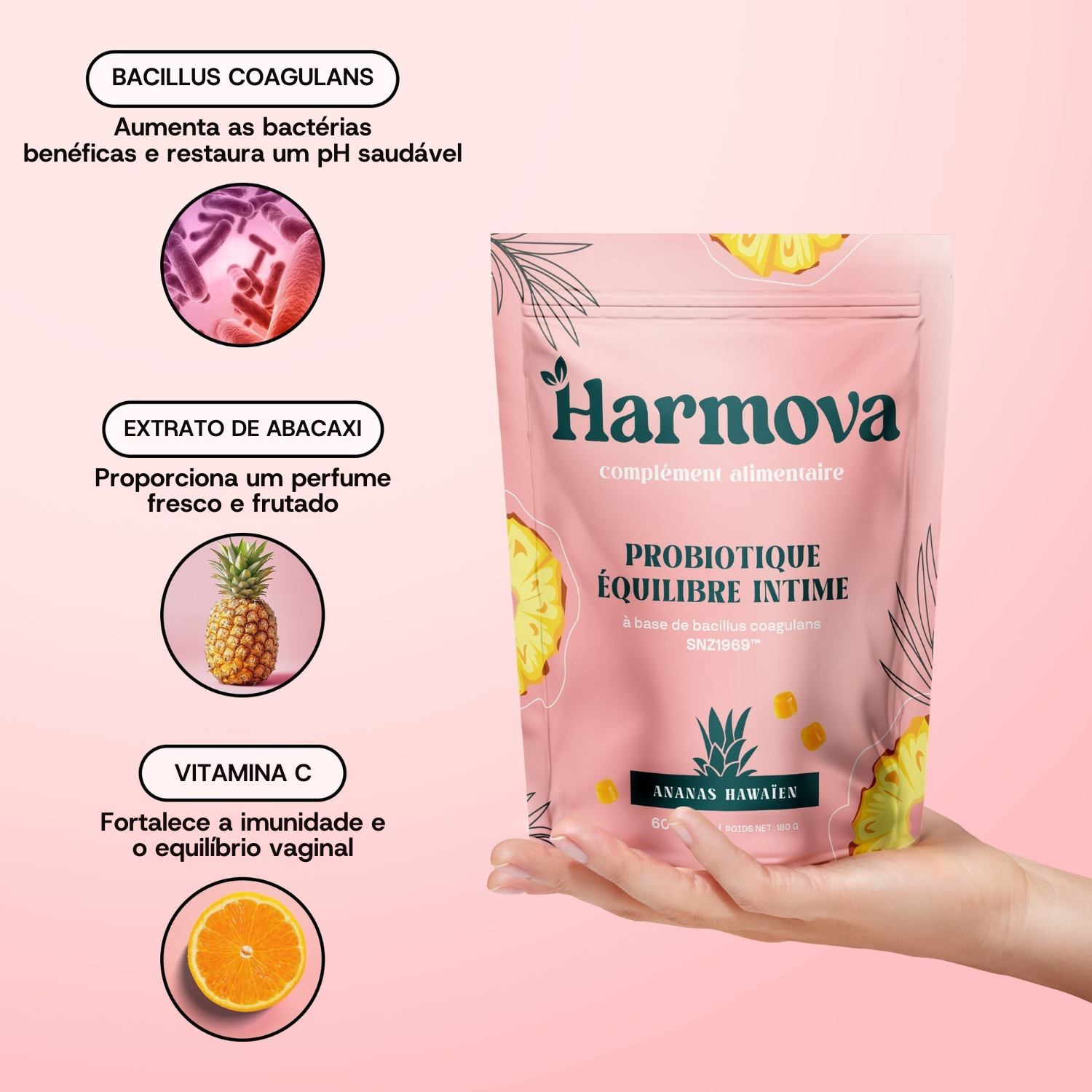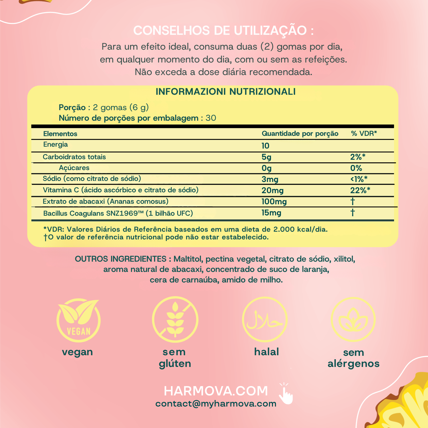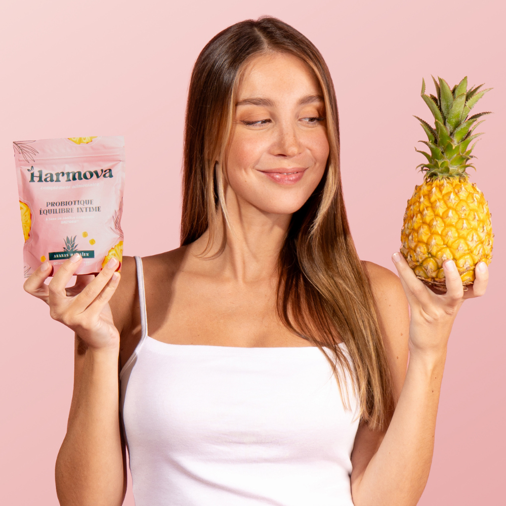 Os nossos gomas destacam-se por associar um extrato natural de ananás a probióticos clinicamente comprovados, oferecendo assim um cuidado completo para a sua saúde intima.